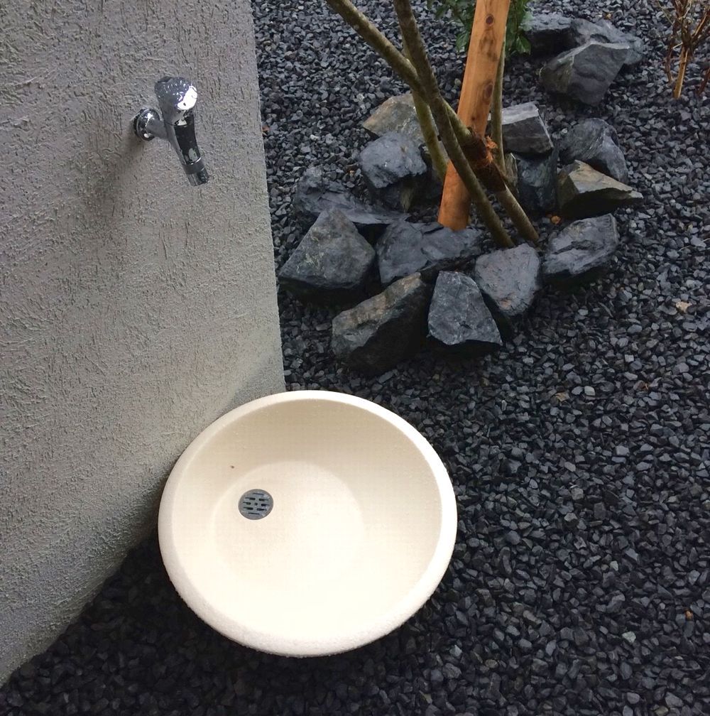 ガーデンパンとは、家の外で使われる水受けのことを指します。蛇口から流れる水を受け皿に溜めたり、皿のような形状を活かして排水口に集めたりしています。立水栓の足元に設置されるのが一般的です。