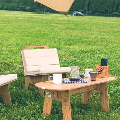 節やヒビ、品質表示のスタンプなど建材をそのまま使用したような素材感を活かしたデザインが人気です。シンプルですが柔らかなフォルムで、板状に分解できるため持ち運びも楽々です。シリーズで揃えるとより統一感が出ておすすめです。