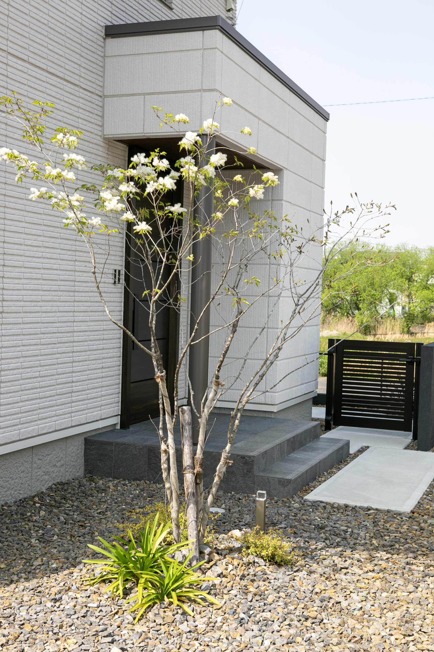 アオダモの繊細な枝ぶりや柔らかい葉の雰囲気は、そうした外構デザインと非常に相性が良いのです。