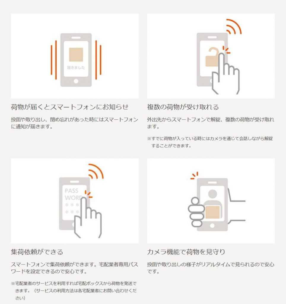 - スマートフォンとつなげることにより、荷物の受け取り・集荷が対面しなくても可能です。