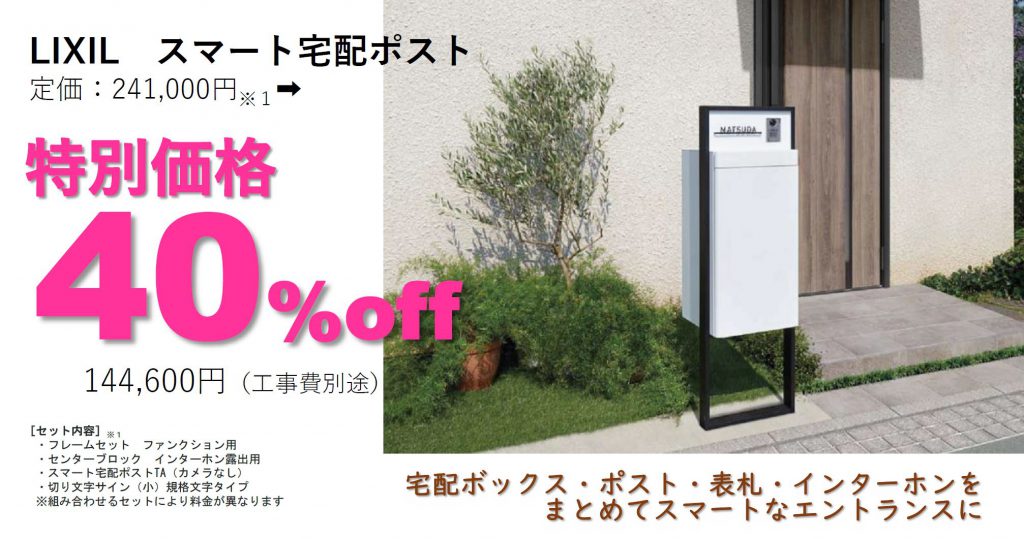 スマート宅配ポストだけではなく、カーポートSC、樹ら楽ステージも対象としておりますので、新築外構をお考えの方も、リガーデンをご検討中の方も、ぜひ一度お話を聞かせてください。