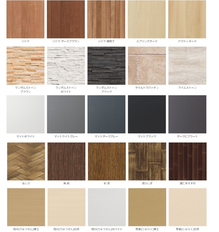 最大の特徴はカラーバリエーションの豊富さです。定番の木柄から、竹垣を繊細に表現した和柄、さらには石柄やメタルカラーまで、その数はなんと驚きの88色(2022年時点)。