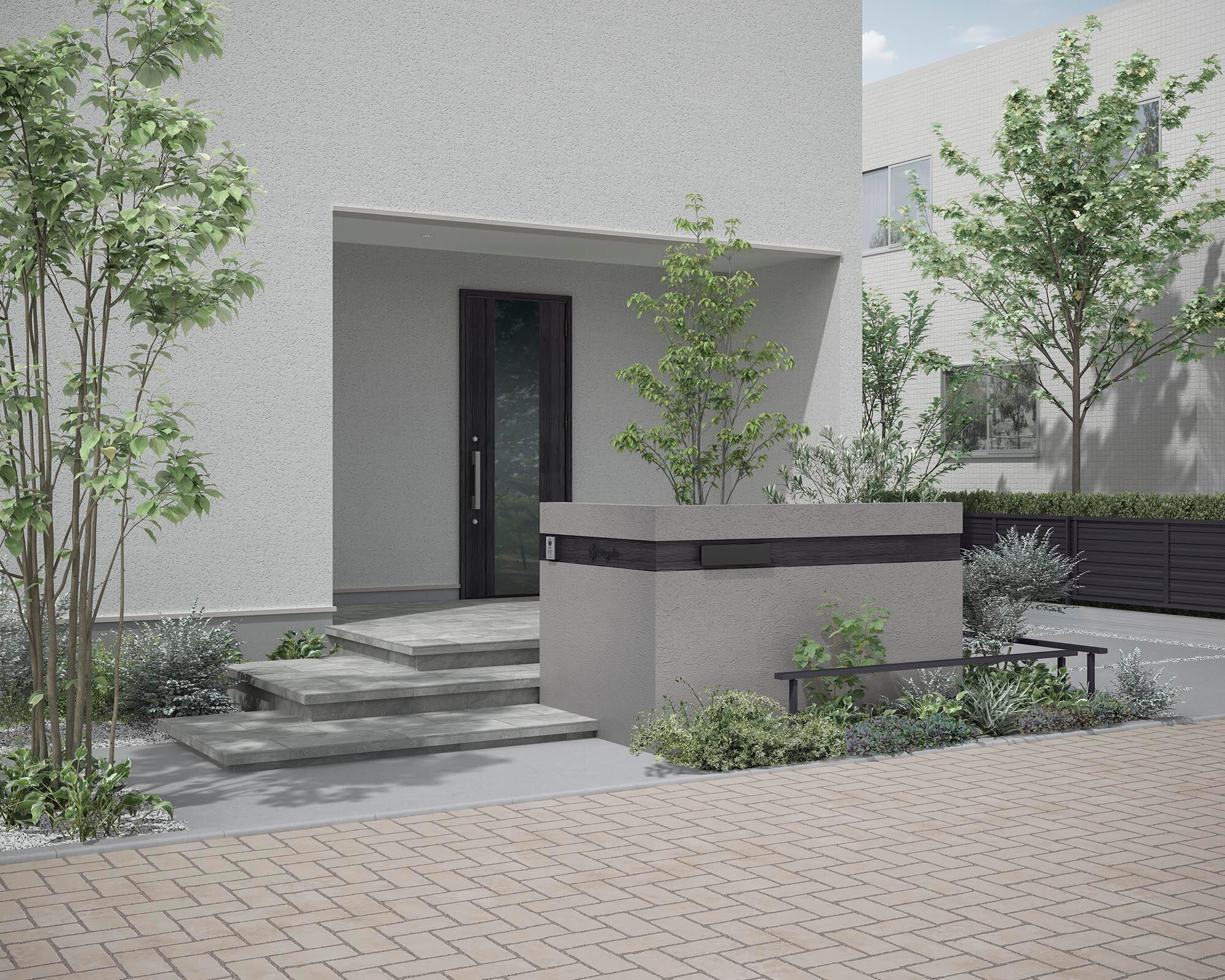 門まわりの外構には、