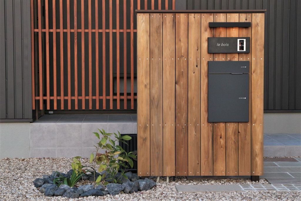 天然木は、何と言ってもやはり自然素材ならではの雰囲気が一番の魅力です。ルボワでもおすすめしている「エコアコールウッド」のように防腐処理がしっかりしてあるものだと、雨風にさらされても長く腐らずに使用できます。ウッドデッキやフェンスと同じように木製の質感や柔らかい印象があり、門まわりの植栽とも相性が抜群です。