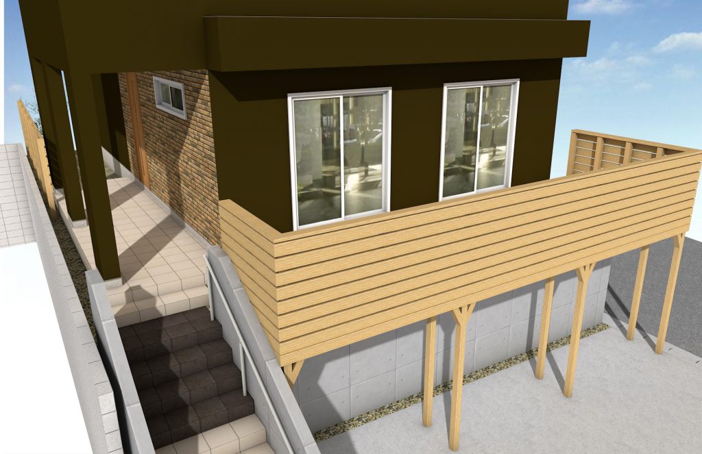 バルコニーデッキとは、その名の通りバルコニーに位置するデッキスペースを意味します。 エクステリアにおける「バルコニーデッキ」は、壁に取り付けるものではなく、背の高いウッドデッキ、もしくはバルコニータイプの屋根が付いたカーポートといった考え方をします。