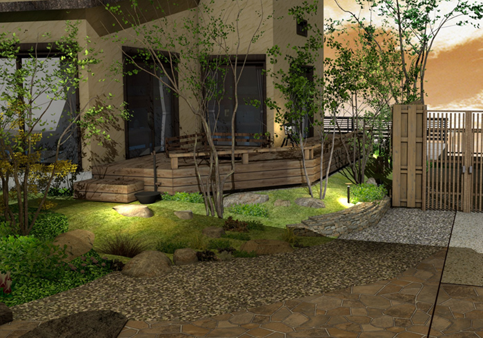 Illuminated Approach and Garden Idea 灯りにほっとする癒しのアプローチとお庭