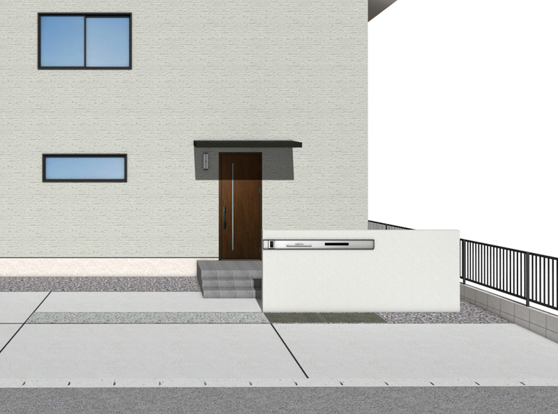 コストパフォーマンスを重視しつつ、玄関前に安心感のある幅広な門壁を配置した、機能性も抜群の快適なモダンデザインです。