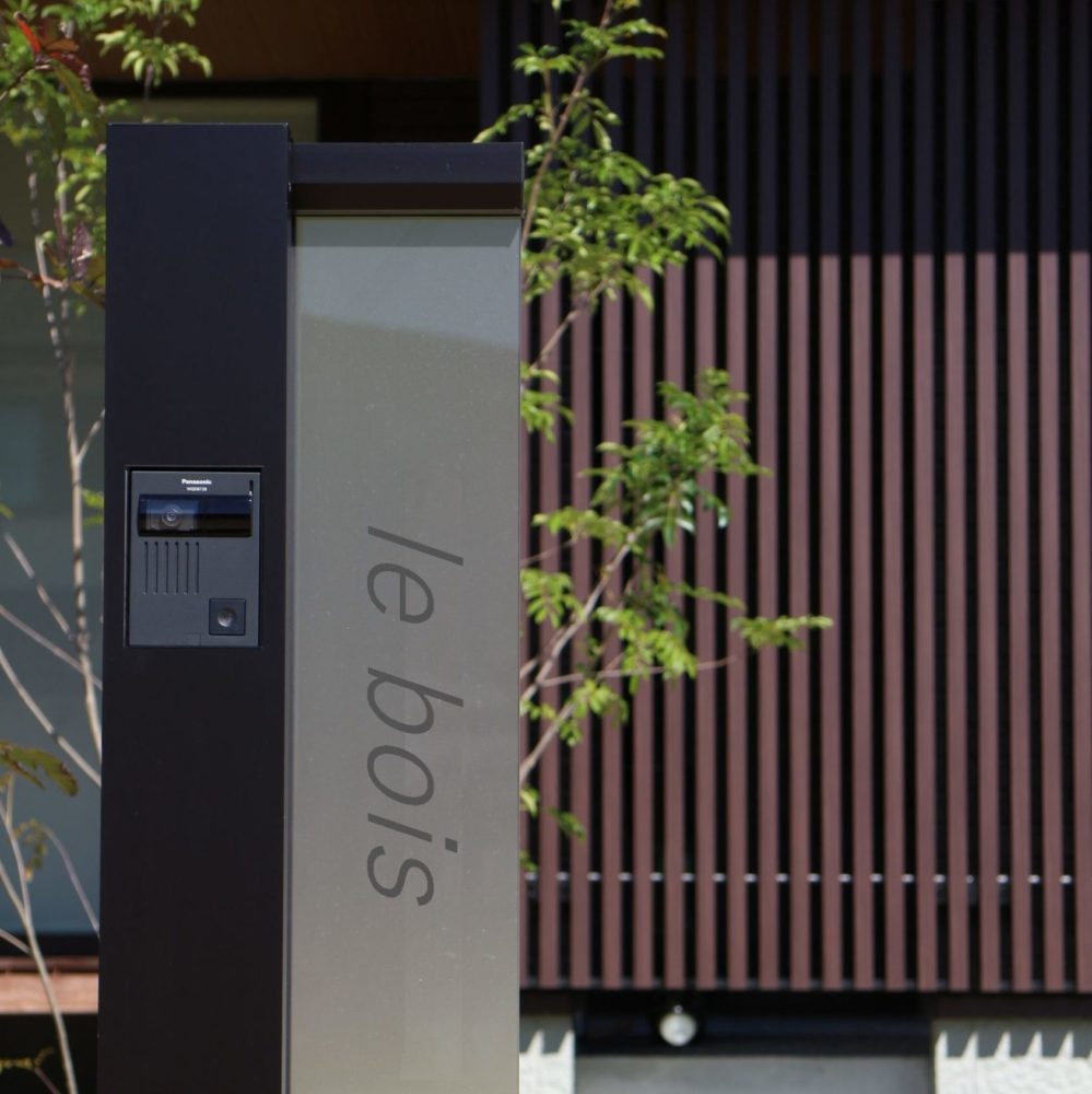 ポストは建物側に取り付けて、インターホンと表札はアプローチの始まりに設置することで、普段の生活動線を楽にしながらプライベート空間を出来る限り多く保てる工夫をしています。