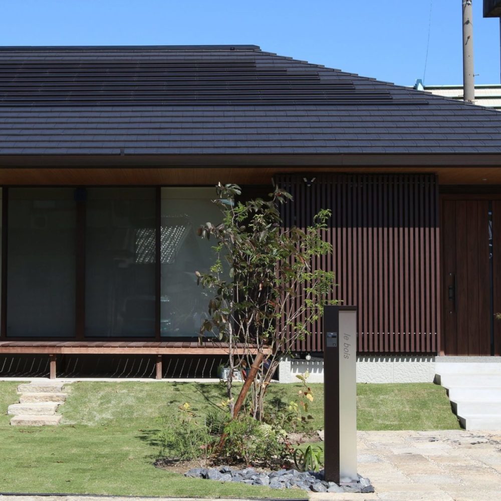 落ち着いた雰囲気の平屋建てを引き立てるような、シンプルかつ自然に馴染む外構を目指しました。