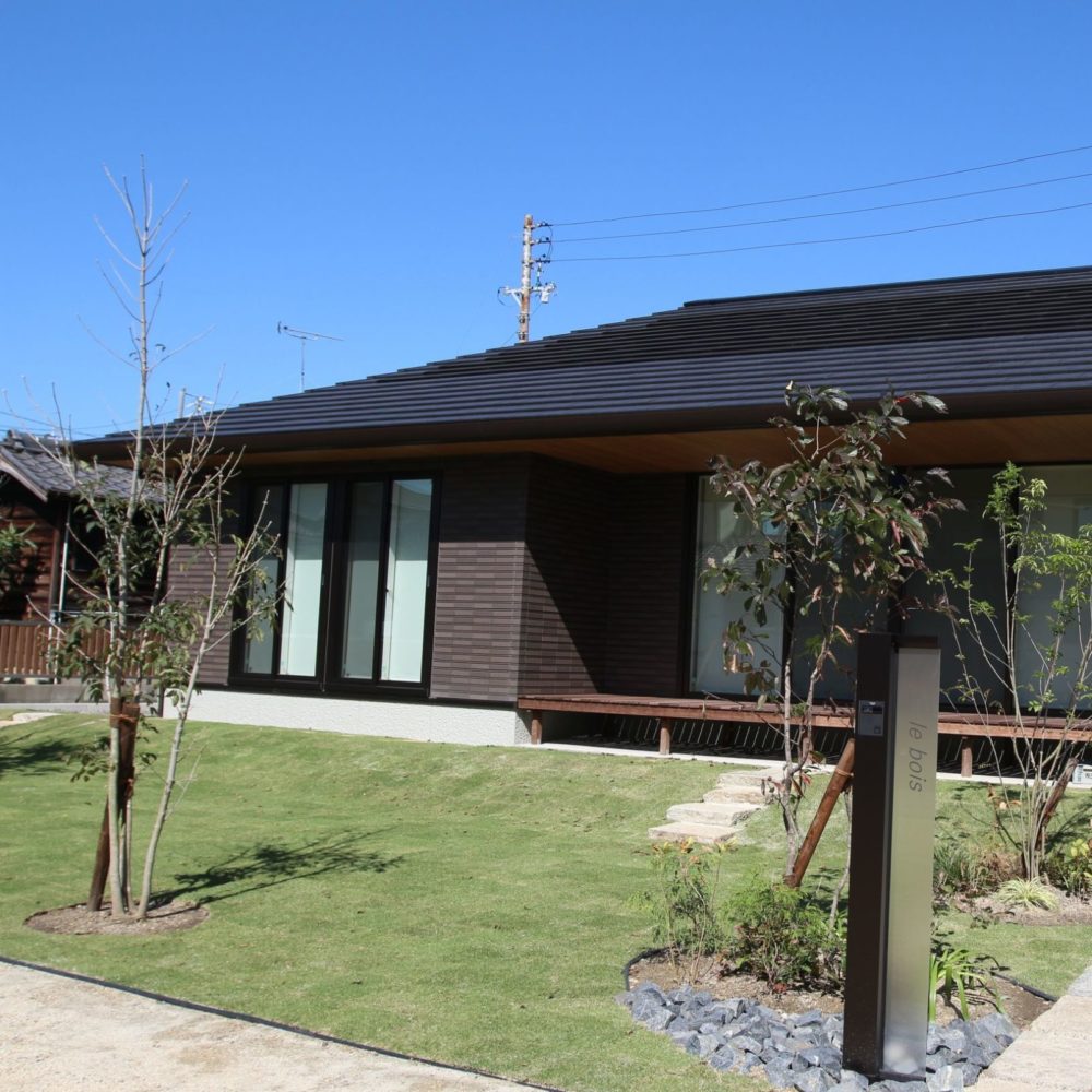 落ち着いた雰囲気の平屋建てを引き立てるような、シンプルかつ自然に馴染む外構を目指しました。