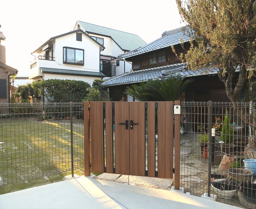 真っ白な漆喰壁と天然木が温かみのある南欧スタイルのお家に似合わせるように設計しました。 「まだ遊び盛りのお子様が道路へ飛び出さないように、お庭ではいっぱい走り回れるように」という要望を取り入れるとともに、柔らかく可愛らしい雰囲気を再現しています。