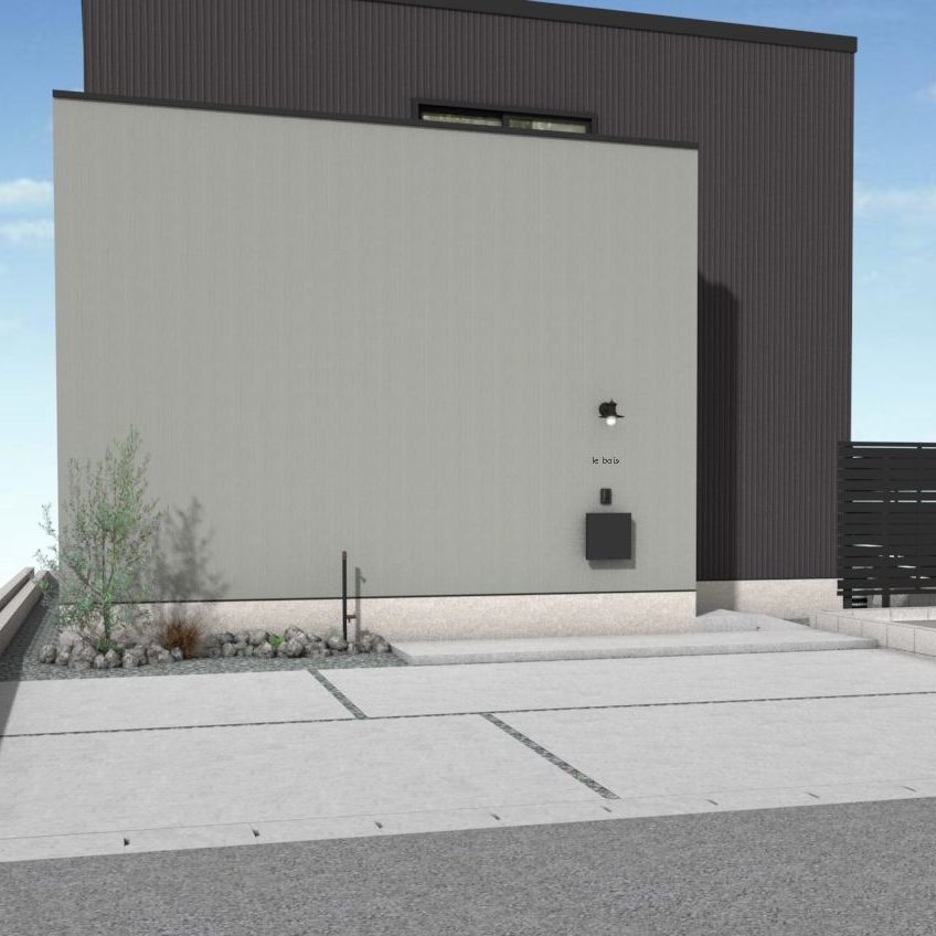 グレーとブラックがメインで統一された住まいに似合う、「シンプルでも目を引く外構」を再現しました。