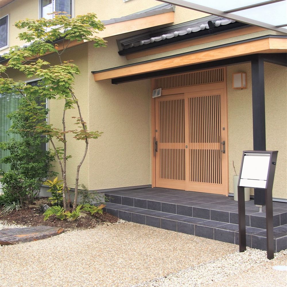 一枚の板石に、切り文字のオリジナル表札を取り付けることで、世界で一つだけの門壁ができました。表札は施主様のお父様の直筆を形にしたこともあり、家族のつながりも感じられる思い出深いお庭となりました。