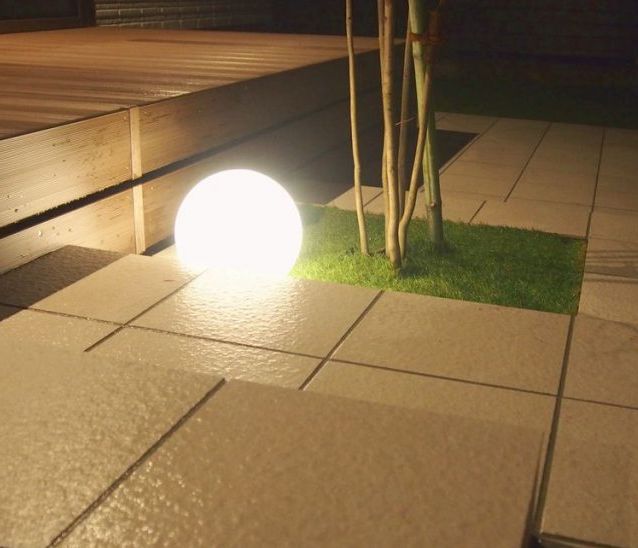 シンボルツリーのアオダモの足元をボールライトで照らしました。植栽帯は極力なくしたいというご要望でしたので、人工芝を入れてほぼメンテナンスフリーの緑を取り入れました。