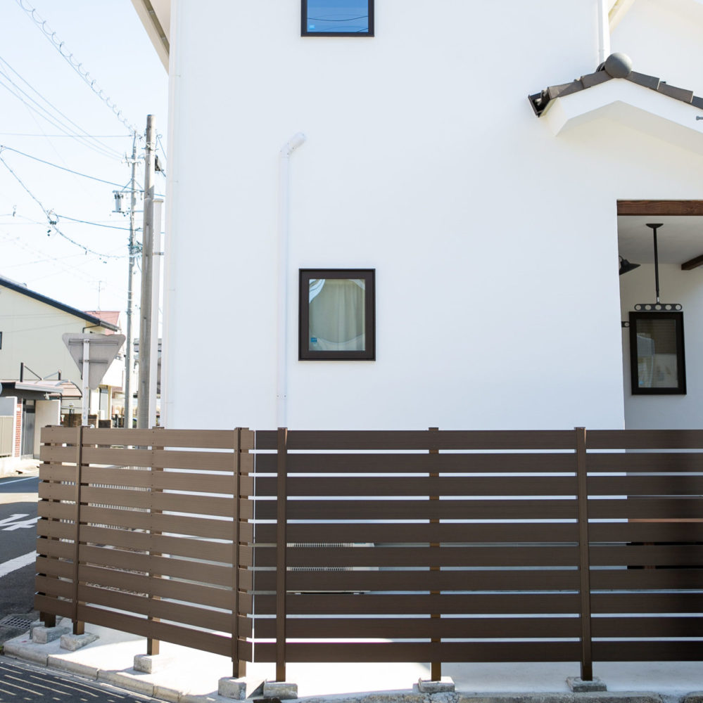 お庭側は道路に面しているために、少し背の高い目隠しフェンスを施工しました。こちらも長くメンテナンスフリーでいられるようにと樹脂フェンスを採用しています。