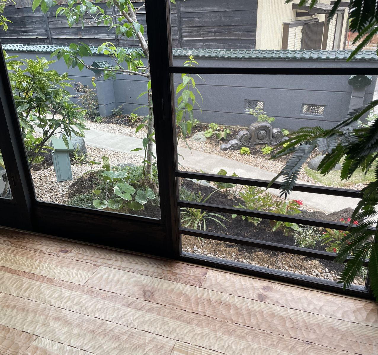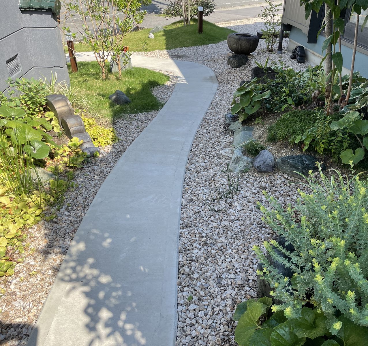 樹木や置き物など、施主様が大切にされているものたちをそのまま残し活かしています。