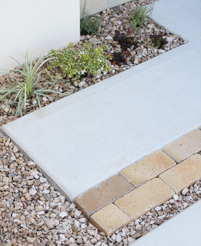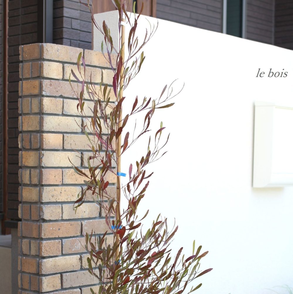 門壁はアプローチと同じレンガを柱状に積んで、壁との高低差・厚みの差を出すことでより立体的に変化をつけてみました。色合いもまとめているので統一感も感じられます。